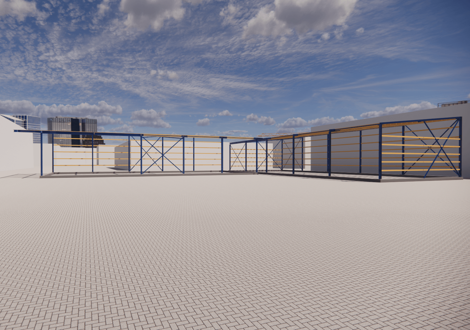 Aan de hand van onze inmetingen op locatie en het reeds bestaande tekenwerk zijn we de bestaande toestand in 3D gaan modelleren. Dit resulteerde in twee loodsen, opgebouwd op dezelfde wijze, maar van verschillende afmetingen. Na het in kaart brengen van deze loodsen hebben we ons gefocust op het omzetten van de eisen van de opdrachtgever in een haalbaar, functioneel ontwerp.